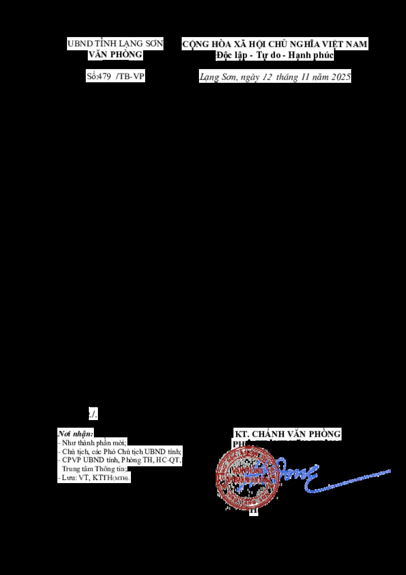 | Số hiệu | 479/TB-VP | Cơ quan ban hành | --- |
