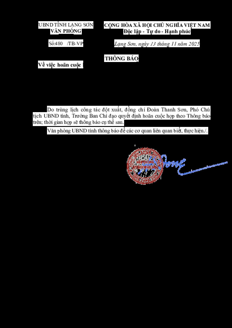 | Số hiệu | 480/TB-VP | Cơ quan ban hành | --- |
