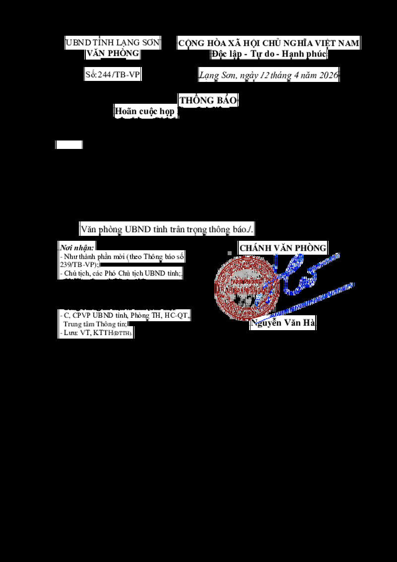 | Số hiệu | 244/TB-VP | Cơ quan ban hành | --- |