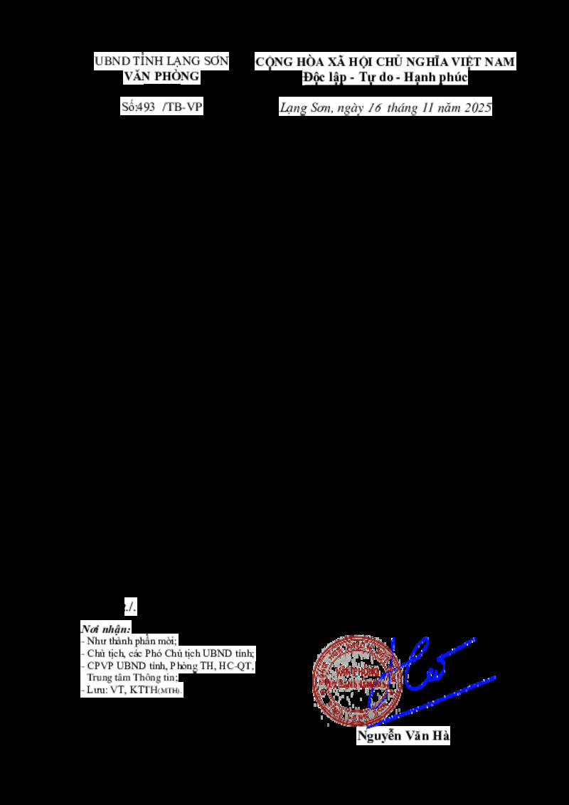 | Số hiệu | 493/TB-VP | Cơ quan ban hành | --- |