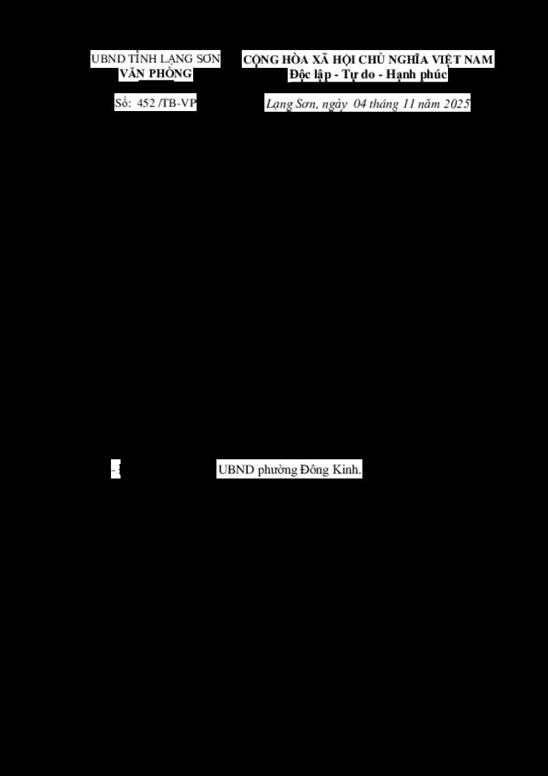| Số hiệu | 452/TB-VP | Cơ quan ban hành | --- |