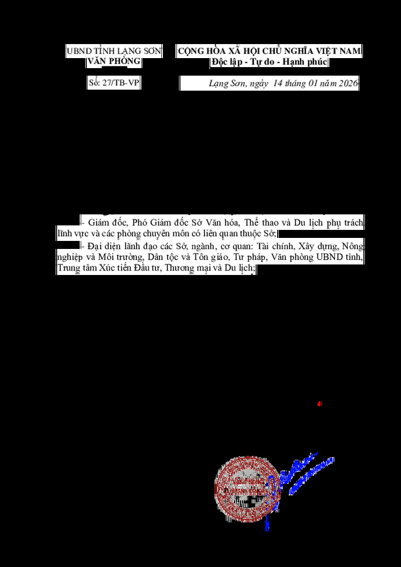 | Số hiệu | 27/TB-VP | Cơ quan ban hành | --- |