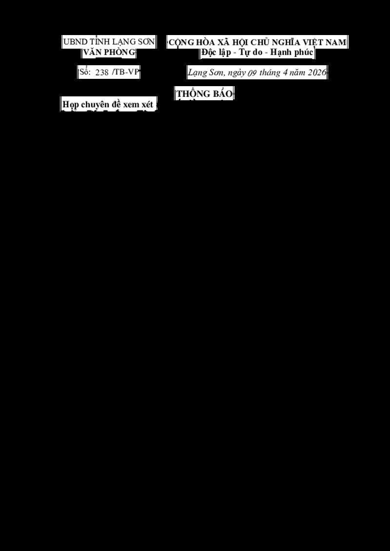 | Số hiệu | 238/TB-VP | Cơ quan ban hành | --- |