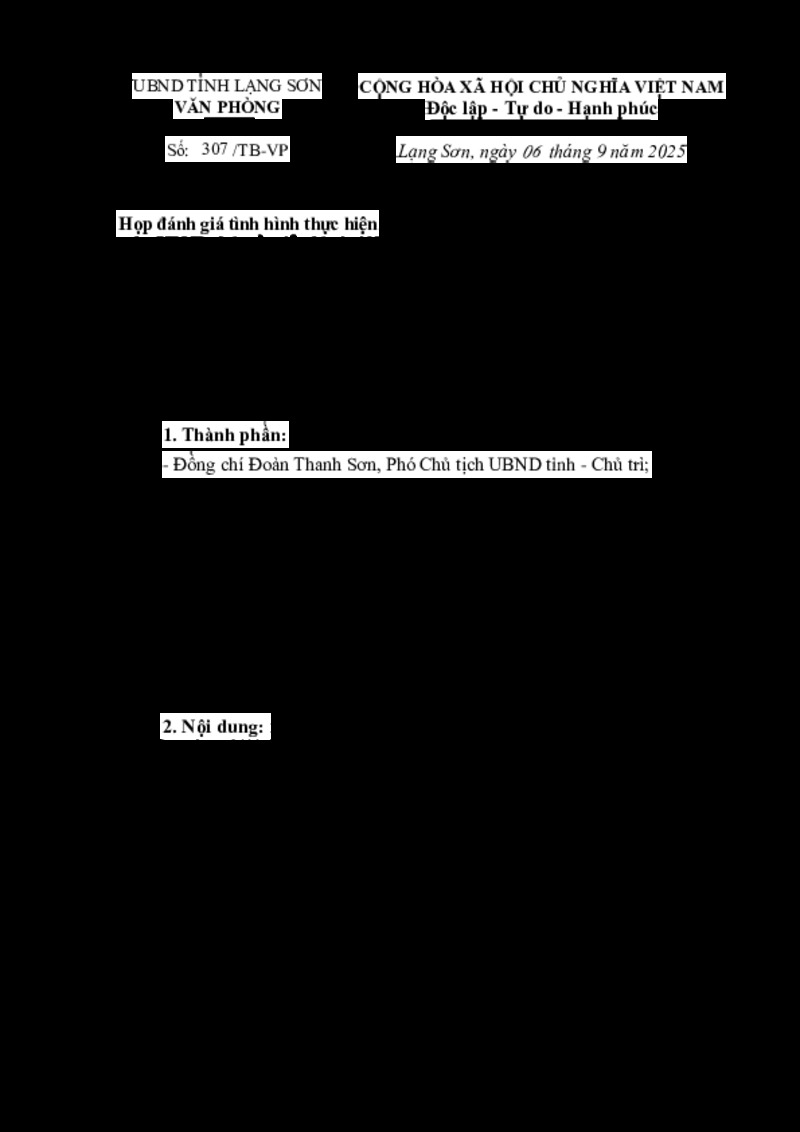 Tiêu đề văn bản | Họp đánh giá tình hình thực hiện Kế hoạch số 116/KH-UBND ngày 21/4/2025 của UBND tỉnh về triển khai giải quyết, tháo gỡ khó khăn, vướng mắc, xử lý đối với các dự án đầu tư trên địa bàn xã Hoàng Văn Thụ, tỉnh Lạng Sơn | ||