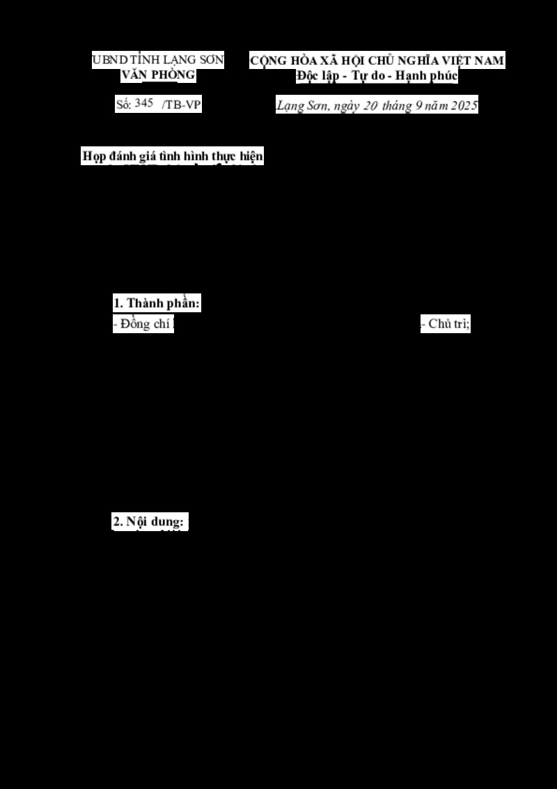 Tiêu đề văn bản | Họp đánh giá tình hình thực hiện Kế hoạch số 116/KH-UBND ngày 21/4/2025 của UBND tỉnh về triển khai giải quyết, tháo gỡ khó khăn, vướng mắc, xử lý đối với các dự án đầu tư trên địa bàn các huyện Lộc Bình (cũ) | ||