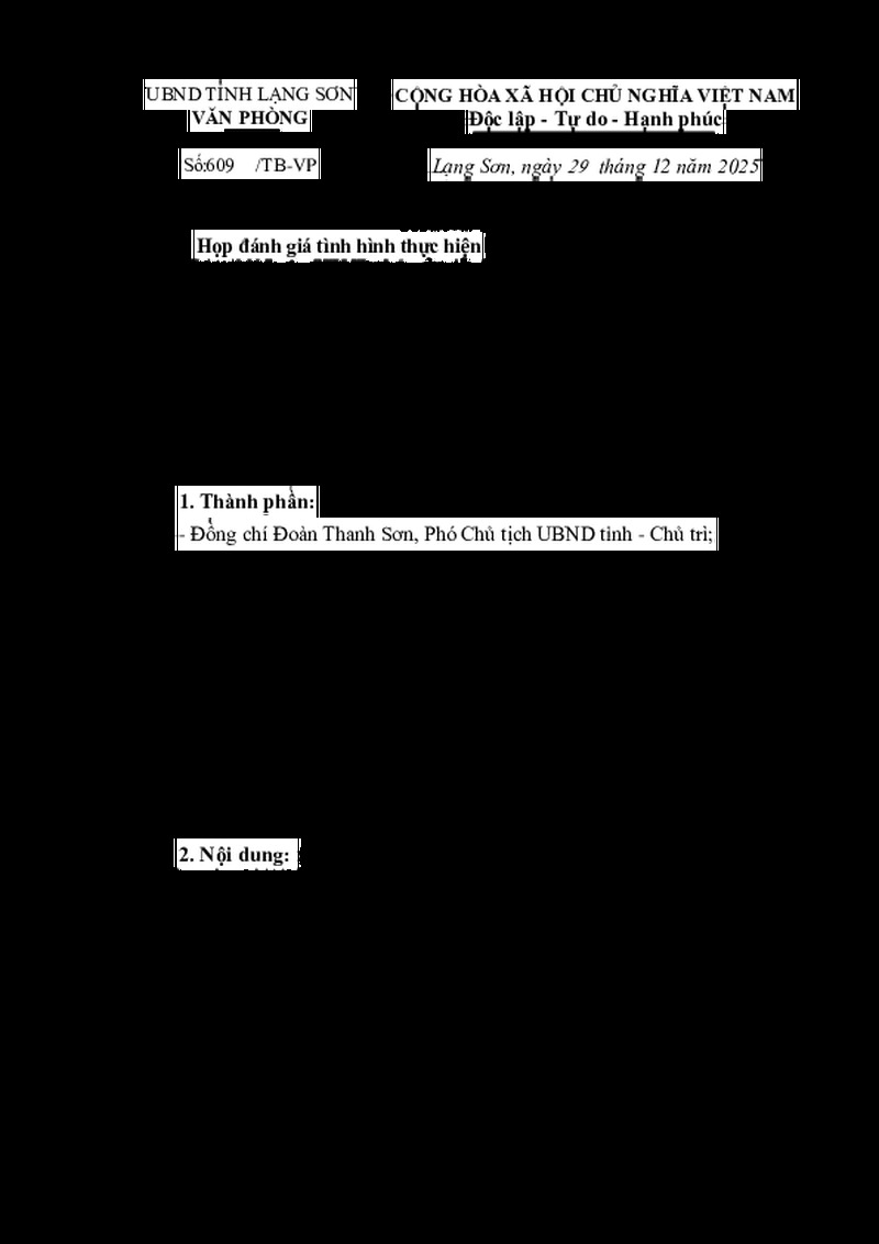 | Tiêu đề văn bản | Họp đánh giá tình hình thực hiện Kế hoạch số 116/KH-UBND ngày 21/4/2025 của UBND tỉnh về triển khai giải quyết, tháo gỡ khó khăn, vướng mắc, xử lý đối với các dự án đầu tư trên địa bàn tỉnh (tại khu vực các huyện Văn Lãng, Tràng Định, Đình Lập cũ) | ||