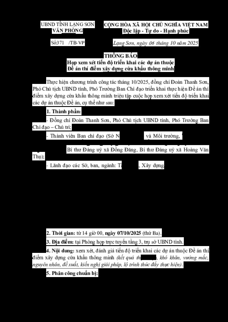 Tiêu đề văn bản | Họp xem xét tiến độ triển khai các dự án thuộc Đề án thí điểm xây dựng cửa khẩu thông minh | ||