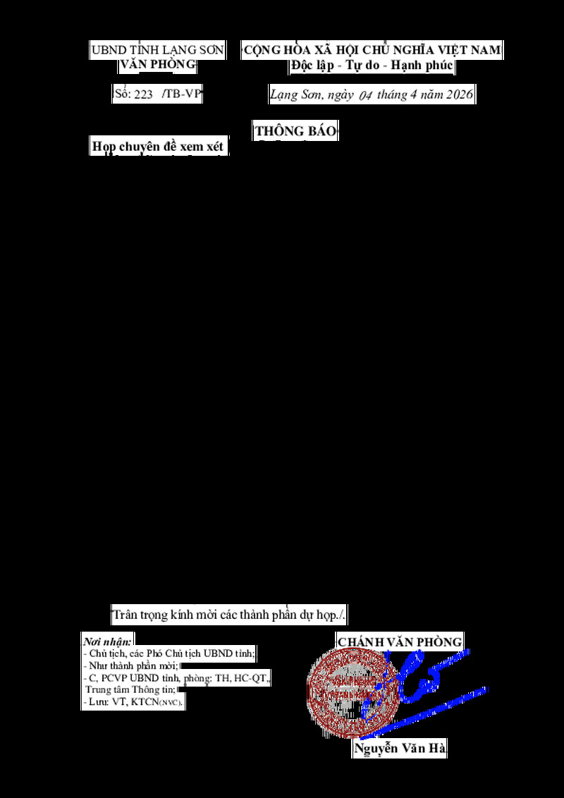 | Số hiệu | 223/TB-VP | Cơ quan ban hành | --- |