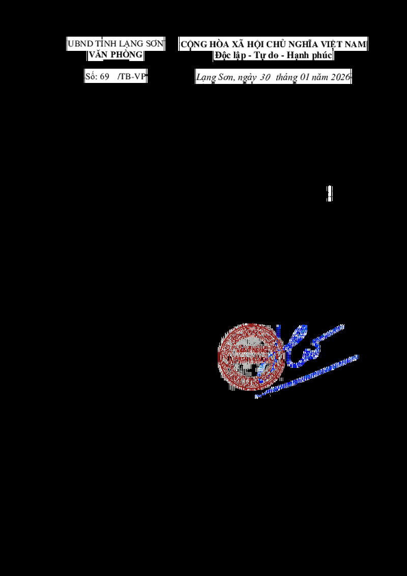 | Số hiệu | 69/TB-VP | Cơ quan ban hành | --- |
