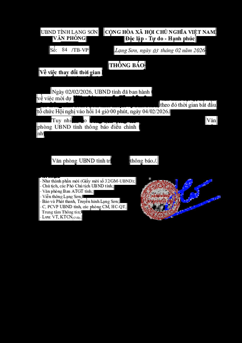 | Số hiệu | 84/TB-VP | Cơ quan ban hành | --- |