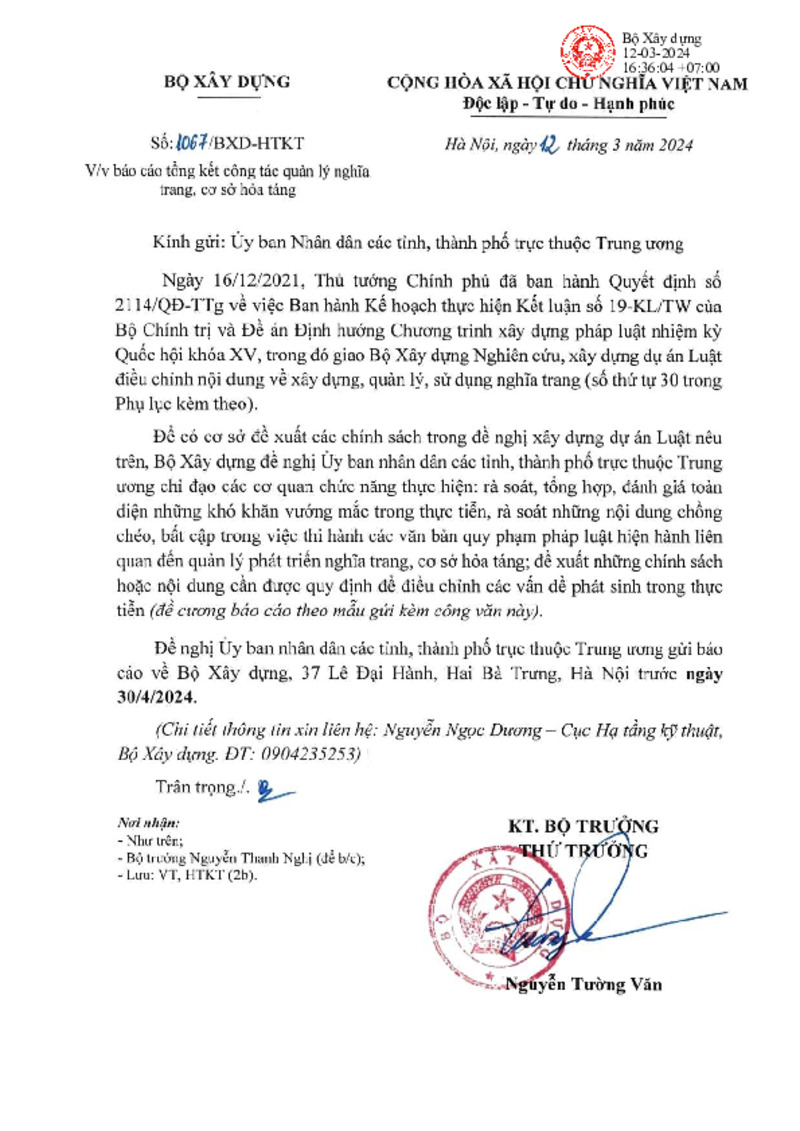 | Tiêu đề văn bản | Gửi các địa phương về báo cáo tình hình thực hiện quản lý Nghĩa trang, cơ sở hỏa táng | ||