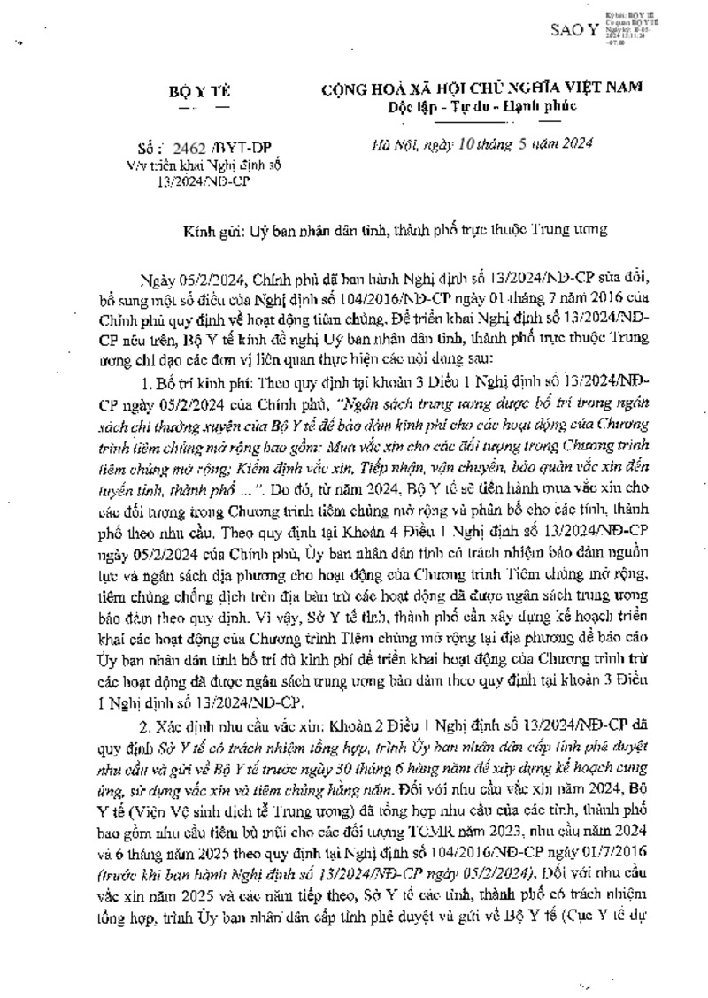 | Số hiệu | 2462/BYT-DP | Cơ quan ban hành | --- |