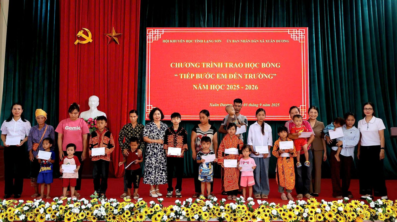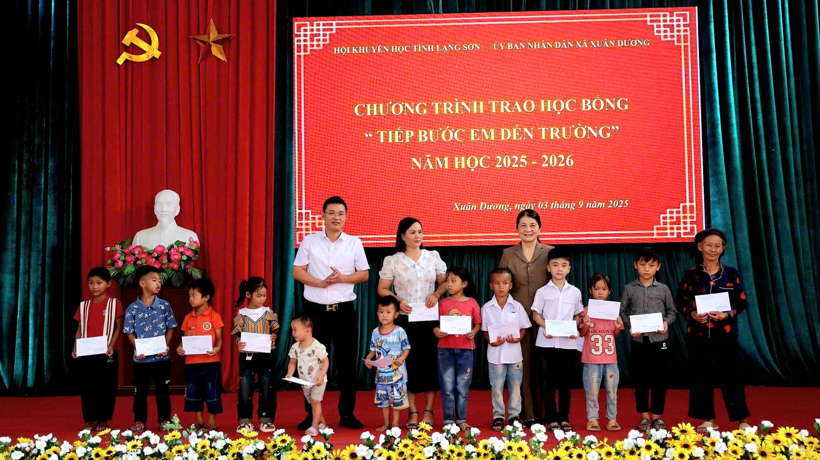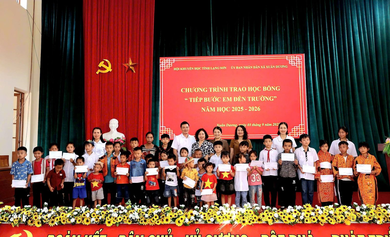 Ngày 03/9/2025, Hội khuyến học tỉnh Lạng Sơn phối hợp với Ủy ban nhân dân xã Xuân Dương tổ chức Chương trình trao học bổng “Tiếp bước em đến trường” năm học 2025-2026. Dự có đồng chí Nguyễn Minh Châu, Chủ tịch Hội Khuyến học tỉnh; đồng chí Lê Thị Kim Hoa, Phó Chủ tịch Hội Khuyến học tỉnh; đại diện Sở Giáo dục và Đào tạo tỉnh. Dự về phía xã có đồng chí Vy Văn Bông, Bí thư Đảng ủy, Chủ tịch HĐND xã; đại diện lãnh đạo UBND, lãnh đạo Phòng Văn hóa - Xã hội; lãnh đạo Văn phòng Đảng ủy xã Xuân Dương, đại diện lãnh đạo các trường có học sinh nhận học bổng.