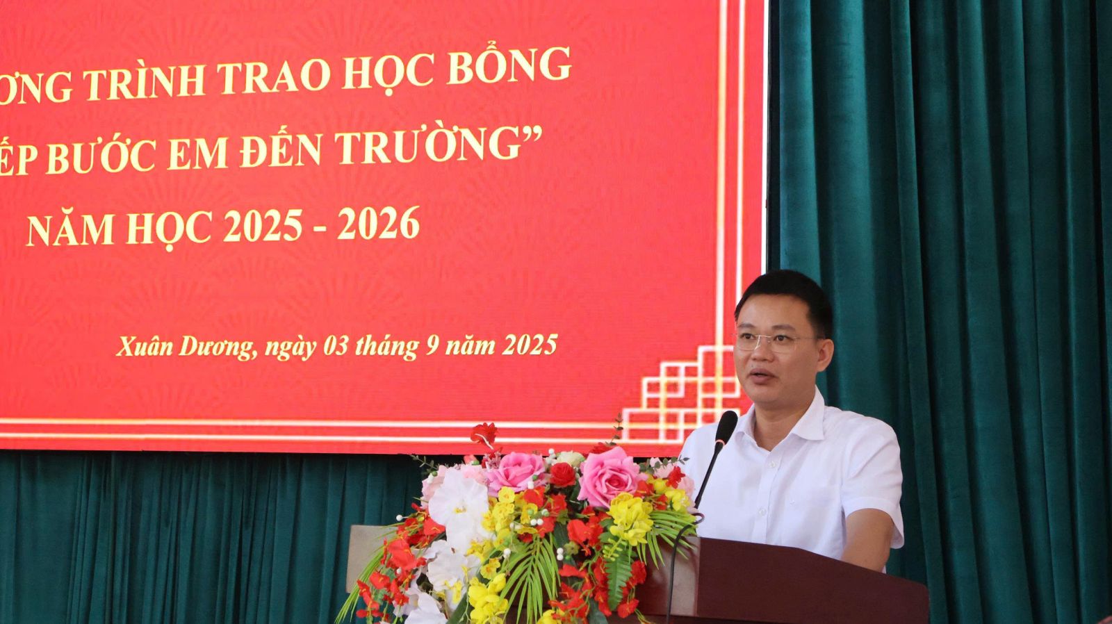 Thay mặt cấp ủy, chính quyền xã Xuân Dương đồng chí Vý Văn Bông, Bí thư Đảng ủy, Chủ tịch HĐND xã trân trọng cảm ơn Hội Khuyến học tỉnh đã quan tâm tổ chức Chương trình trao học bổng bổng “Tiếp bước em đến trường” năm học 2025-2026 cho các em học sinh có hoàn cảnh đặc biệt khó khăn trên địa bàn xã trước thềm năm học mới; kịp thời hỗ trợ các gia đình, nhà trường có thêm điều kiện để chăm sóc, nuôi dưỡng cho các em học sinh đến trường với niềm vui, phấn khởi, góp phần thực hiện hiệu quả chính sách an sinh xã hội, nâng cao dân trí, đào tạo nhân lực, bồi dưỡng nhân tài của Đảng và Nhà nước; triển khai thực hiện đạt và vượt các chỉ tiêu năm học 2025-2026 đề ra.