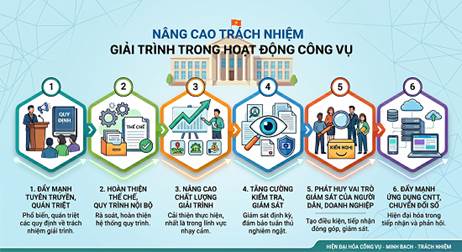 Theo đó, các nhiệm vụ trọng tâm được xác định gồm: đẩy mạnh tuyên truyền, quán triệt các quy định về trách nhiệm giải trình; rà soát, hoàn thiện thể chế, quy trình nội bộ; nâng cao chất lượng thực hiện giải trình, nhất là trong các lĩnh vực nhạy cảm; tăng cường kiểm tra, giám sát; phát huy vai trò giám sát của người dân, doanh nghiệp; đồng thời đẩy mạnh ứng dụng công nghệ thông tin, chuyển đổi số trong tiếp nhận, xử lý và phản hồi kiến nghị.