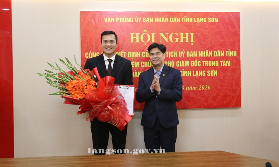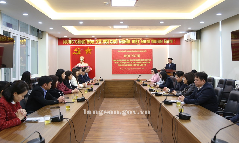 Chiều ngày 09/3/2026, Văn phòng UBND tỉnh tổ chức Hội nghị công bố Quyết định của Chủ tịch UBND tỉnh về việc điều động và bổ nhiệm chức vụ Phó Giám đốc Trung tâm Phục vụ hành chính công tỉnh Lạng Sơn.
