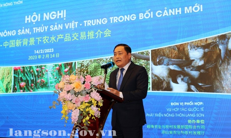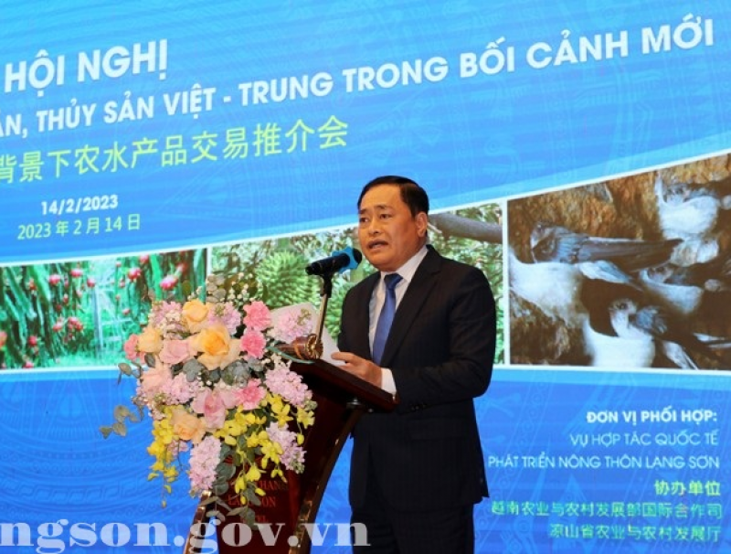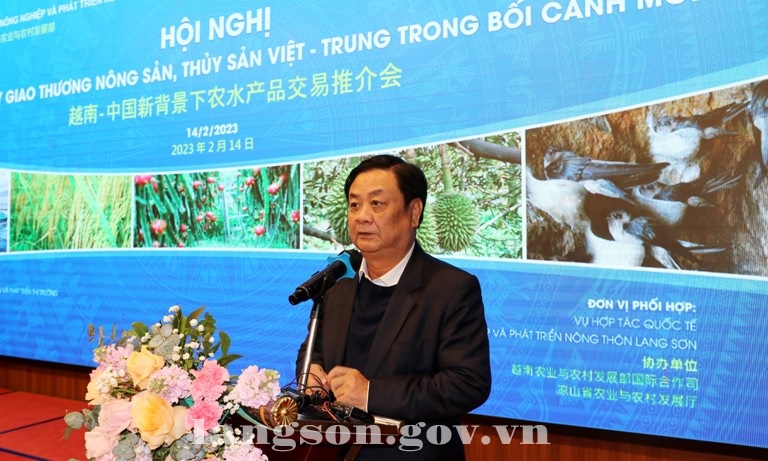 Sáng ngày 14/2/2023, tại thành phố Lạng Sơn, Bộ Nông nghiệp và Phát triển nông thôn và UBND tỉnh Lạng Sơn đồng chủ trì tổ chức Hội nghị thúc đẩy giao thương nông sản, thủy sản Việt - Trung trong bối cảnh mới. Dự Hội nghị có đồng chí Lê Minh Hoan, Ủy viên Trung ương Đảng, Bộ trưởng Bộ Nông nghiệp và Phát triển nông thôn và đồng chí Hồ Tiến Thiệu, Phó Bí thư Tỉnh ủy Lạng Sơn. Cùng dự có đại diện lãnh đạo một số bộ, ngành trung ương, lãnh đạo UBND tỉnh Lạng Sơn, lãnh đạo UBND và Sở Nông nghiệp và Phát triển nông thôn một số tỉnh phía Bắc, đại biểu đại diện cho các cơ quan, hiệp hội, ngành hàng, doanh nghiệp, hợp tác xã, thương nhân xuất nhập khẩu nông sản, thủy sản, trái cây Việt Nam và Trung Quốc. Hội nghị được tổ chức theo hình thức trực tuyến với đại diện Đại sứ quán Trung Quốc tại Việt Nam, kết nối với điểm cầu các tỉnh, thành phía Nam và điểm cầu một số cơ quan, tổ chức tại Trung Quốc.