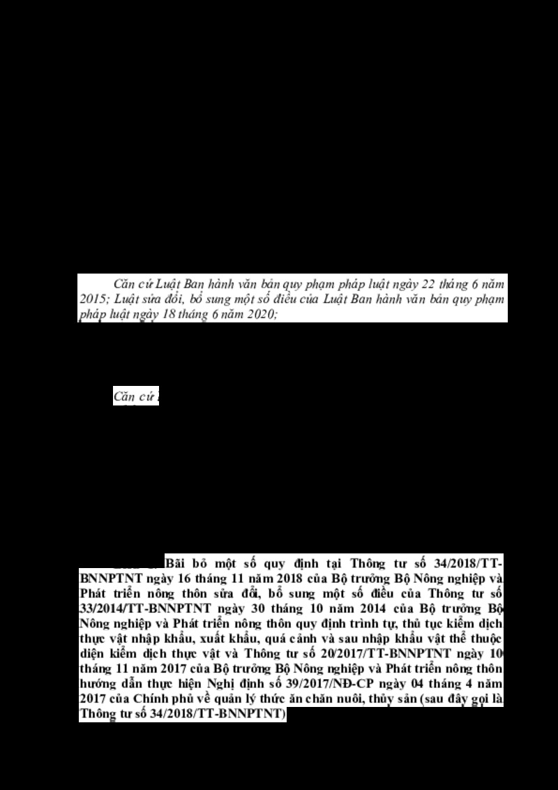 | Tiêu đề văn bản | hông tư bãi bỏ một số quy định tại Thông tư số 34/2018/TT-BNNPTNT ngày 16 tháng 11 năm 2018 của Bộ trưởng Bộ Nông nghiệp và Phát triển nông thôn sửa đổi, bổ sung một số điều của Thông tư | ||