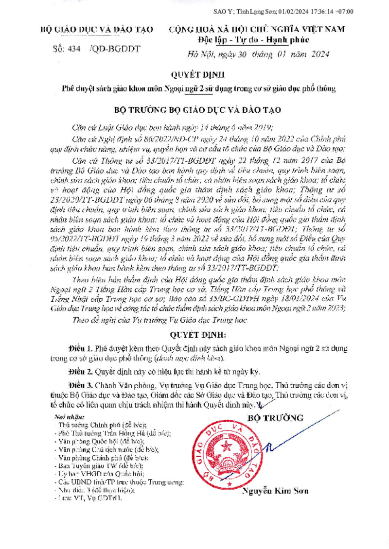 | Tiêu đề văn bản | Phê duyệt sách giáo khoa môn Ngoại ngữ 2 sử dụng trong cơ sở giáo dục phổ thông | ||